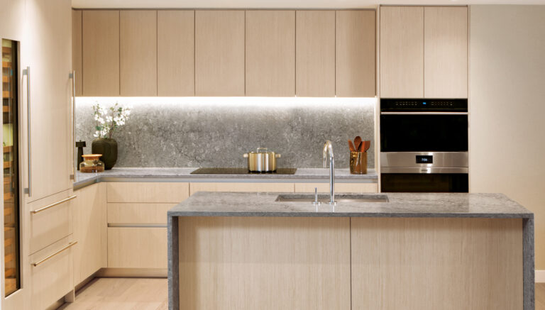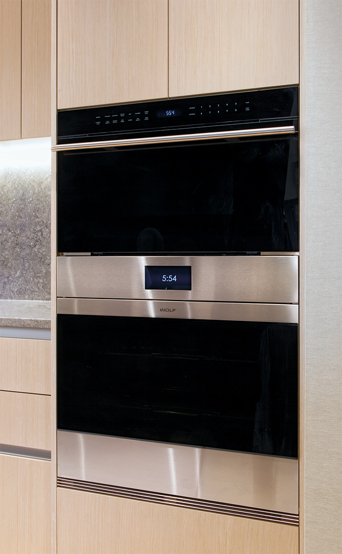 As is fitting in a home of such distinction, the kitchen combines exquisite design with unparalleled function. Iconic Sub-Zero and Wolf appliances seamlessly integrate with the neutral toned kitchen cabinetry, making entertaining guests effortlessly elegant with their precision engineering. The quartz slab countertop that waterfalls over the edge of the kitchen island further heightens the centrepiece to your home, making it a place for creative expression and gathering those you love.
